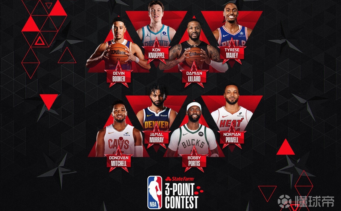 2026年洛杉矶全明星赛的三分球大赛名单已经公布,参赛球员分别是波蒂斯、贾马尔-穆雷、克努佩尔、鲍威尔、马克西、米切尔、布克和本赛季因伤无法参赛的利拉德。