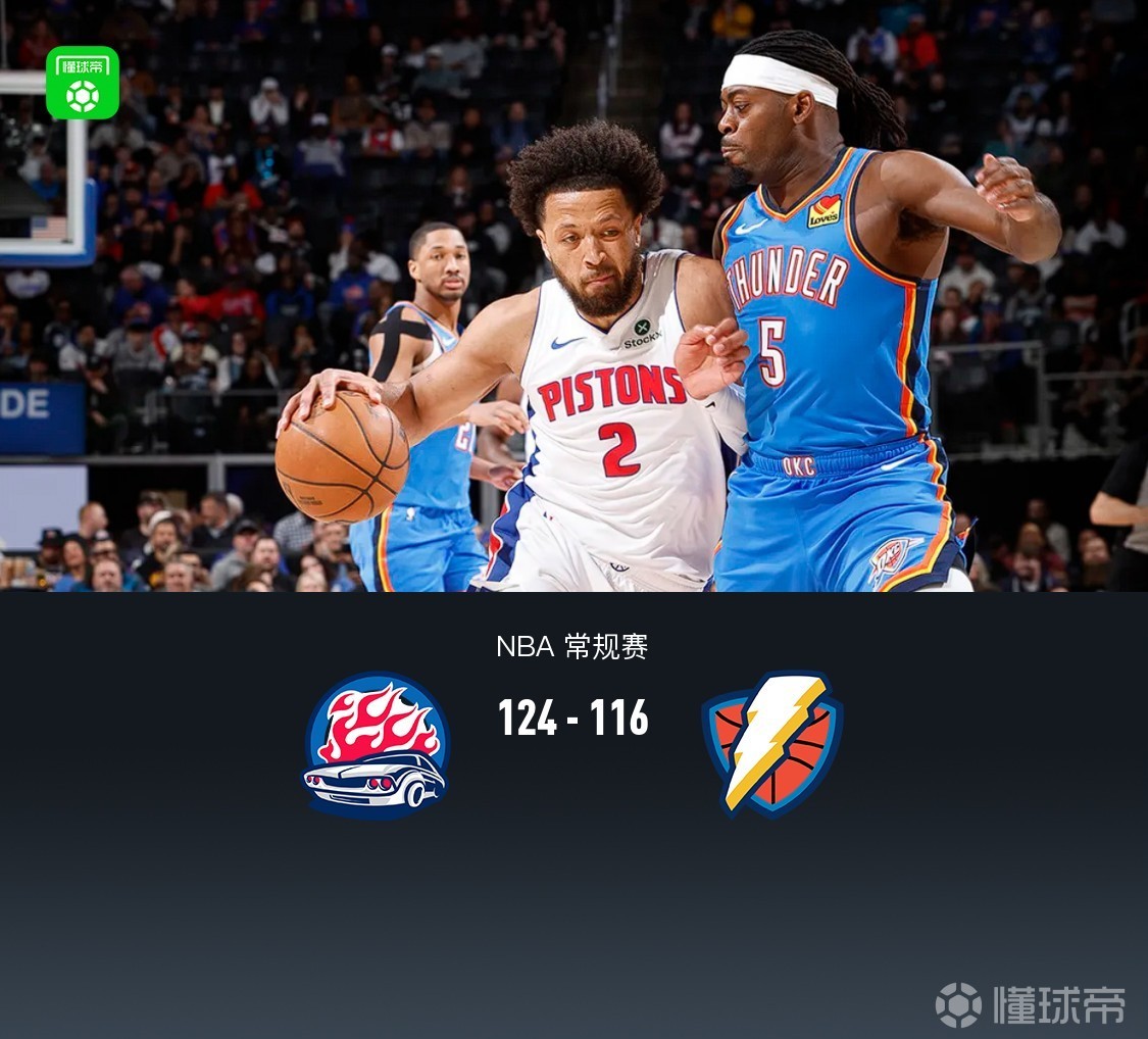 第四节活塞坎宁安拿下12分,雷霆杰林-威廉姆斯拿下14分,最终活塞124-116战胜雷霆