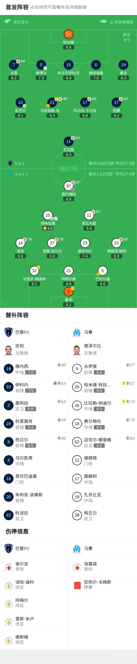 第53分钟,格林伍德送助攻,奥巴梅扬轻松破门,马赛2-0巴黎FC