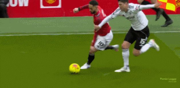 第84分钟,希门尼斯射门时马奎尔放铲,裁判判罚点球,并向马奎尔出示黄牌!希门尼斯亲自主罚命中,富勒姆1-2曼联!