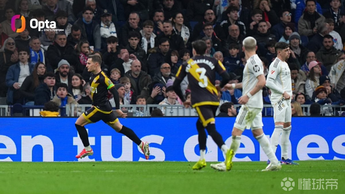 此役主场对阵巴列卡诺,上半场取得1-0领先的皇家马德里在下半场第49分钟被对手扳平比分。