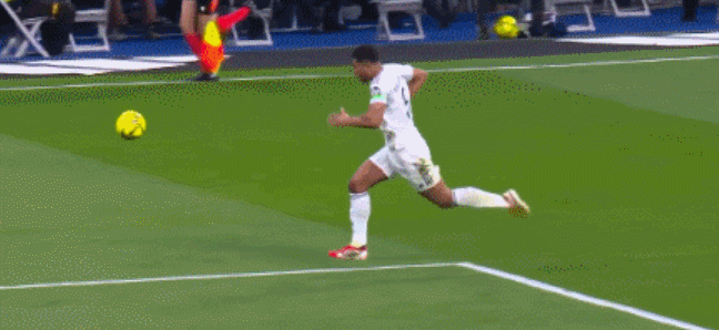 比赛开始前,贝林厄姆就摸着自己的腿筋,但他还是首发了
