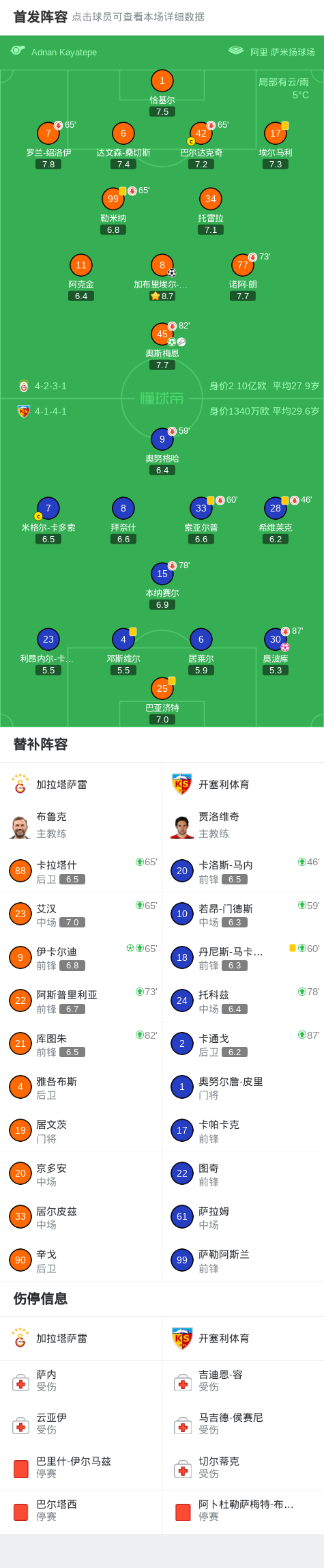 北京时间2月2日土耳其足球超级联赛 联赛 第20轮,加拉塔萨雷主场对阵开塞利体育。加拉塔萨雷奥斯梅恩破门,伊卡尔迪破门,加布里埃尔-萨拉破门。开塞利体育奥波库自摆乌龙。最终比分加拉塔萨雷 4-0 开塞利体育。