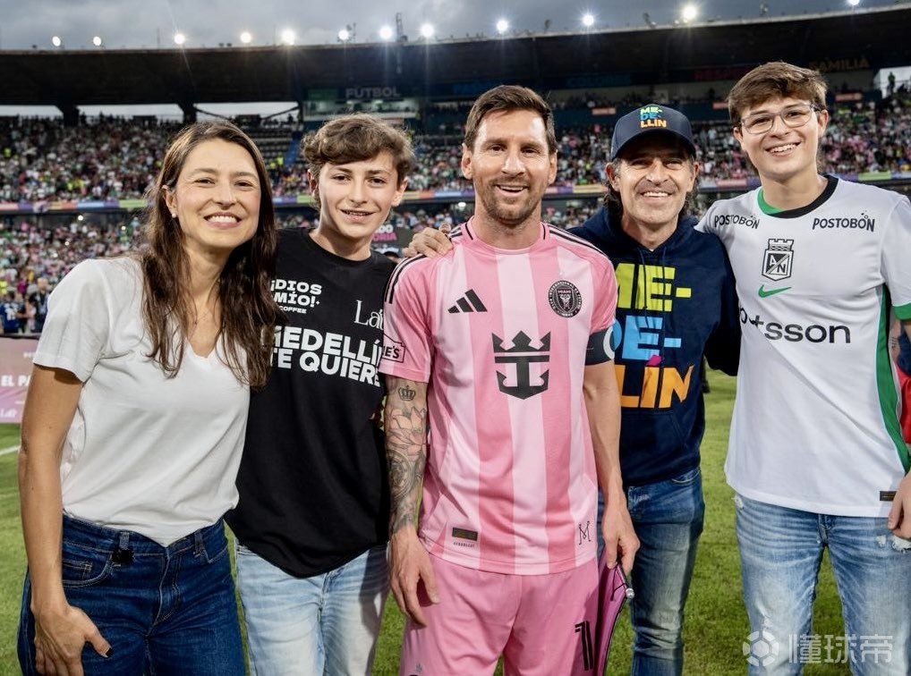 在迈阿密国际与国民竞技的比赛结束后,哥伦比亚麦德林市长Federico Gutiérrez在社交媒体上分享了全家与梅西的合影。