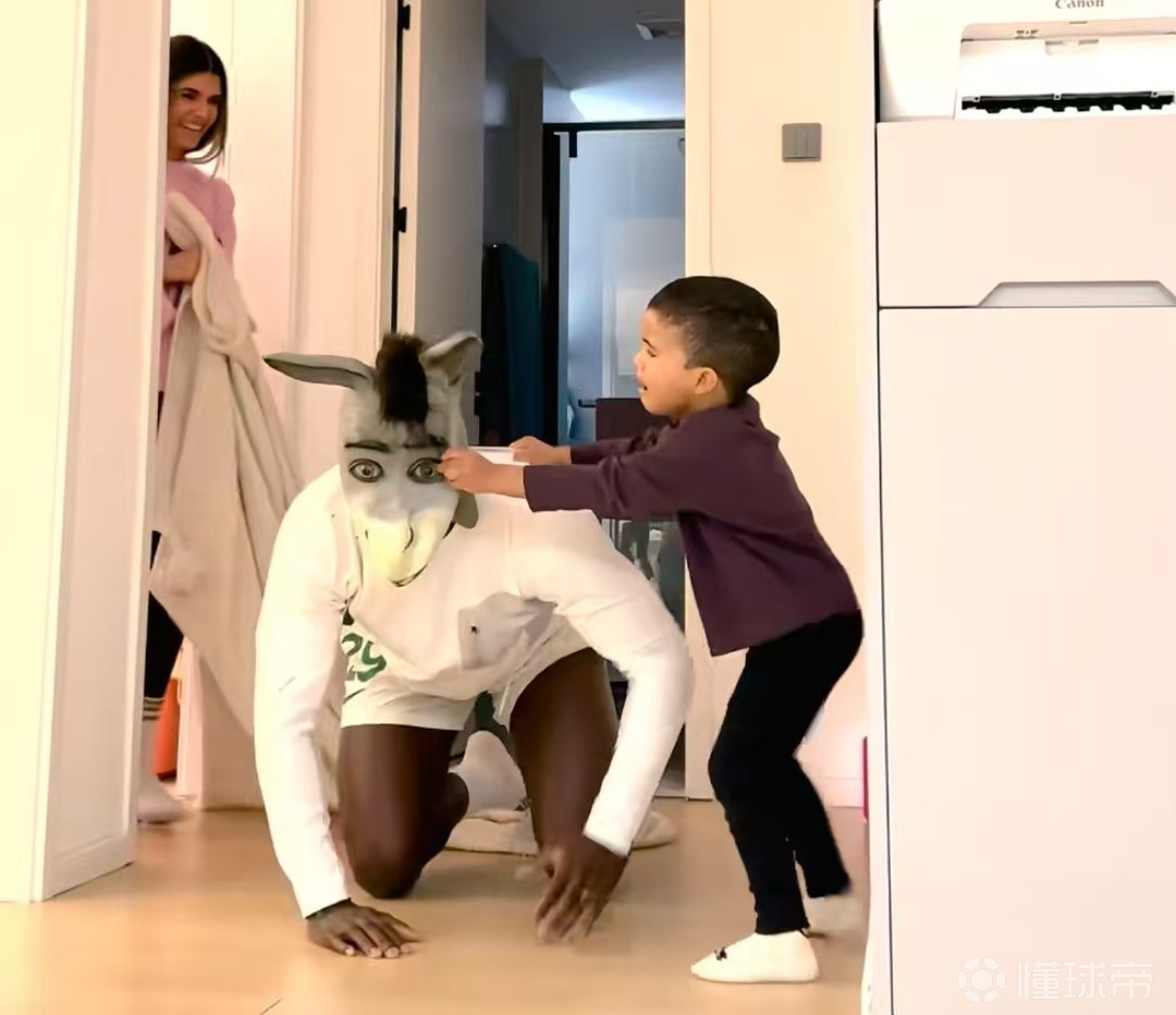 法比奥社媒分享亲子时光,头戴“驴头套”与家人互动