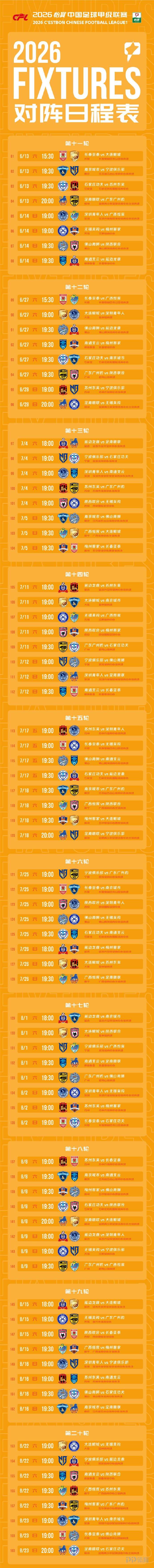 2026中甲赛程公布:3月14日开赛 11月7日落幕