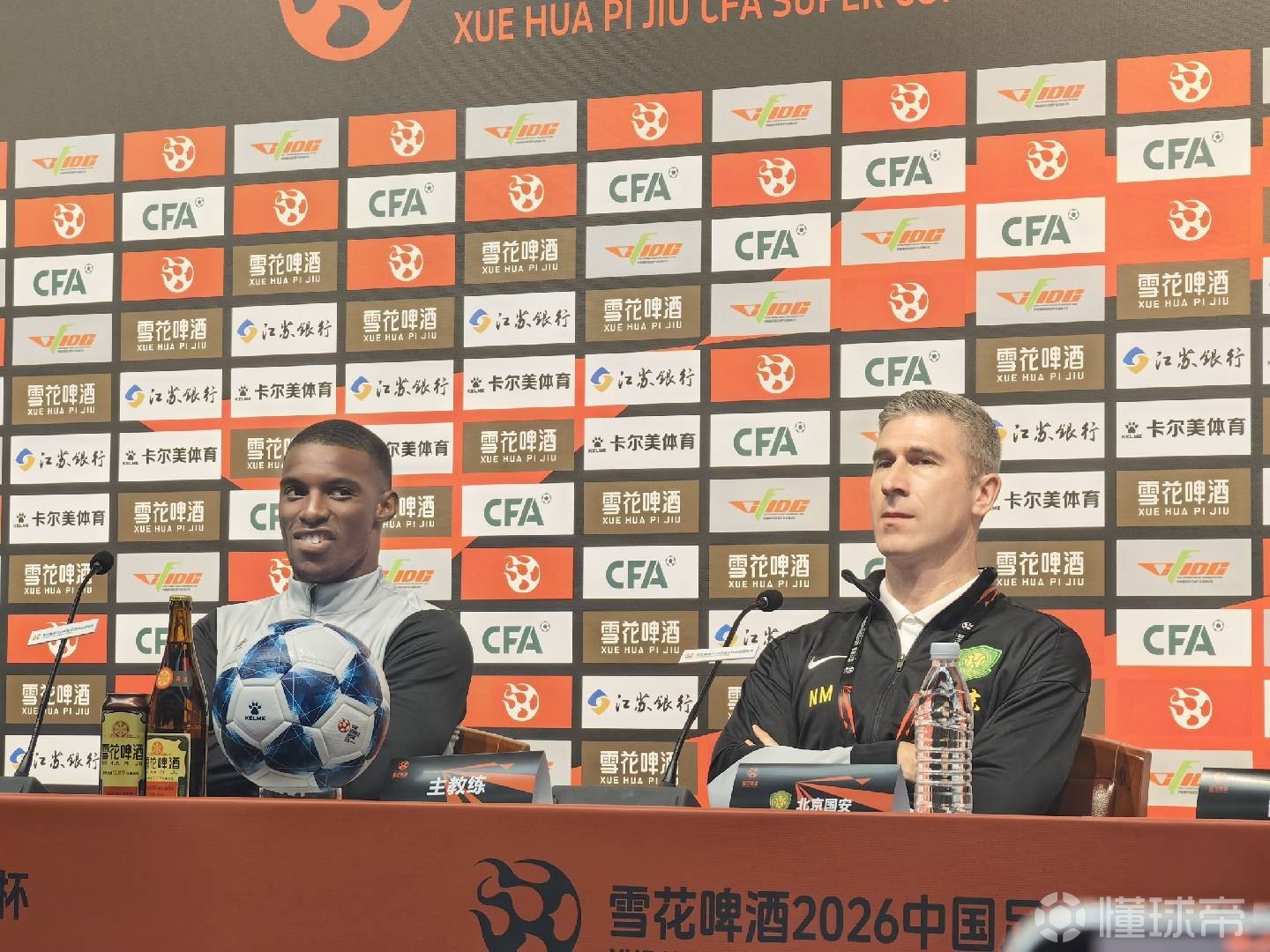 北京时间2月28日,2026中国足协超级杯赛前新闻发布会在南京奥体中心举行。北京国安主教练蒙哥马利携球员法比奥出席。