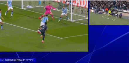 第22分钟,B席手球红点,维尼修斯点射,皇马总比分4-0曼城