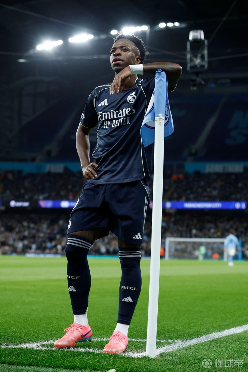 此役对阵曼城打入一球后,维尼修斯欧冠对阵曼城已直接参与7球,包括3球4助。